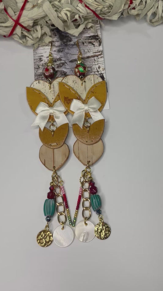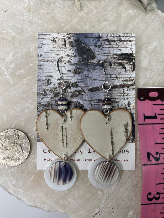 Birchbark Heart Earrings with Wampum