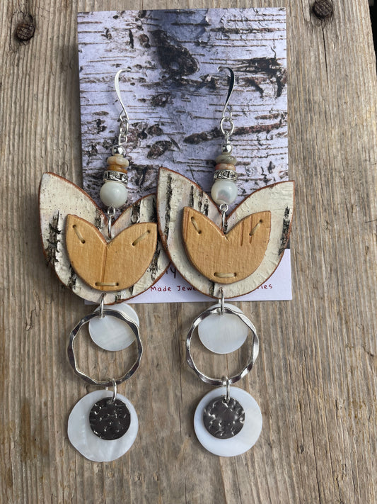 Birchbark Layered Floral Earrings with Mother of Pearl and Shell