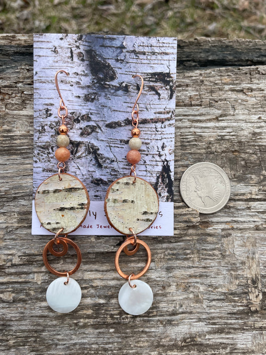 17 inch Shooting Star Birchbark and Porcupine Quill Earrings with Deerskin Lace
